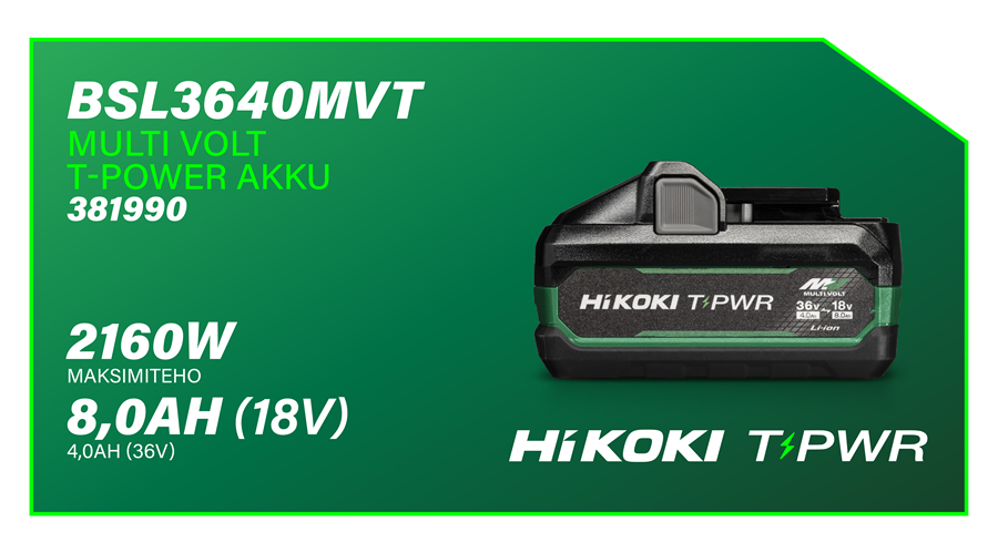 HiKOKI T-PWR akku on tehokas virtalähde, joka on suunniteltu parantamaan